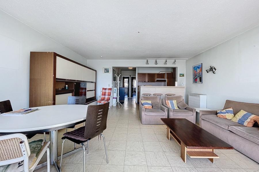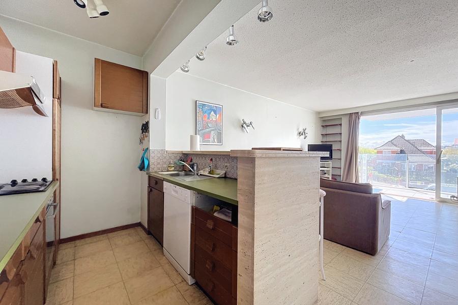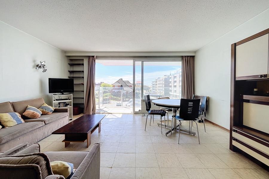 Op te knappen appartement met mooi zeezicht en zicht op Mieke Hill. Het appartement is gelegen vlak bij alle winkels alsook de KYC. Indeling: inkomhal, toilet, keuken, eetkamer met living, ruim en zongericht terras, badkamer en twee slaapkamers. Ref. Sabine 0201