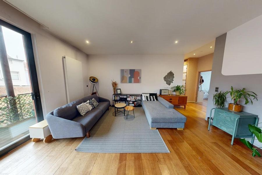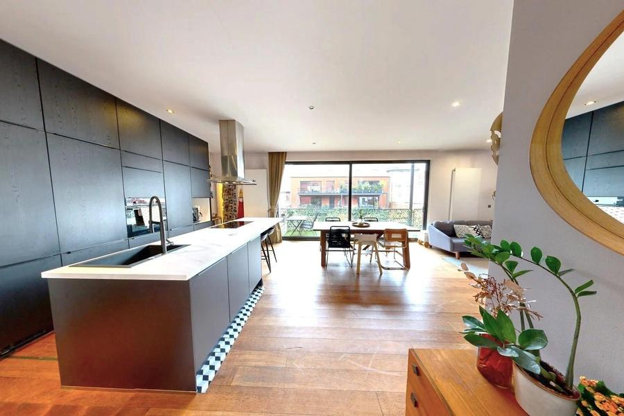 Ruim en lichtrijk appartement van 115m² met 3 slaapkamers en groot terras van 19m² te koop aan Tour & Taxis.