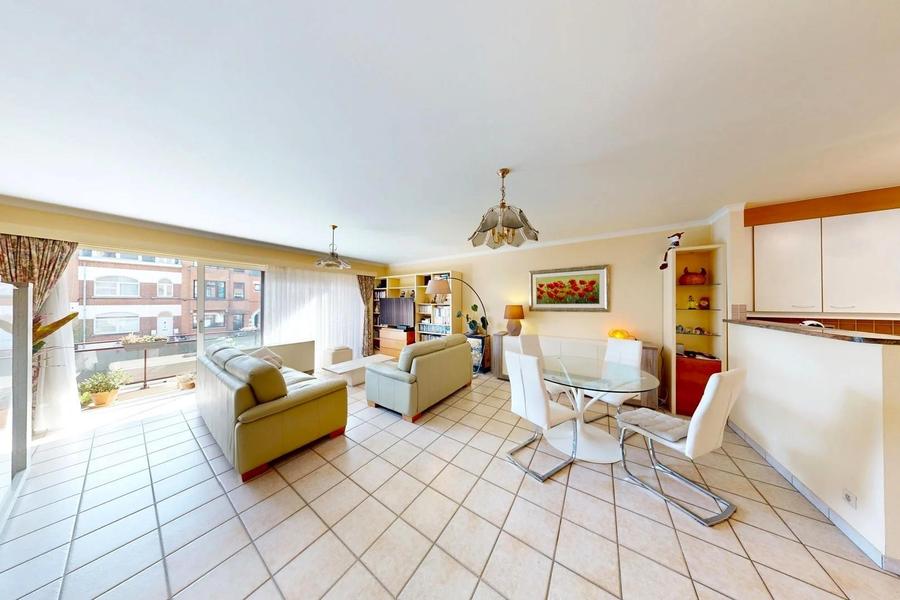 Lichtrijk appartement met ruim terras en mogelijkheid tot 3 slaapkamers Virtuele toer https://my.matterport.com/show/?m=hhMyeu7GSbM In een residentieel gebouw bevindt zich dit ruime en lichtrijke appartement van 109 m², aangevuld met 15 m² terrassen. Het appartement beschikt over twee royale slaapkamers (21 m² en 15,5 m²), met de mogelijkheid een derde slaapkamer te creëren, zoals oorspronkelijk voorzien. Alle kamers geven toegang tot het terras met een mooi open zicht. De lichtrijke leefruimte met grote raampartijen en elektrische rolluiken biedt directe toegang tot het terras aan de straatkant. De open, volledig uitgeruste keuken sluit hier perfect bij aan. Daarnaast omvat het appartement een inkomhal met beveiligde deur en ingemaakte kasten, een praktische wasplaats, een douchekamer met bidet en dubbele wastafel, en een apart gastentoilet. Technische kenmerken: EPC: E Dubbele beglazing (ALU) Elektrische verwarming Beveiligde deur & videofoon Maandelijkse lasten: €203 (inclusief provisie water) Kelder inbegrepen Autostaanplaats beschikbaar aan €25.000 Bent u op zoek naar een ruim en instapklaar appartement met terrassen? Contacteer ons voor een bezoek!