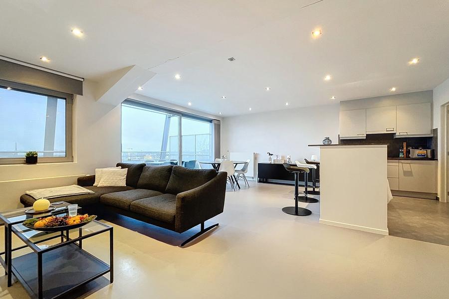 Binnen geniet u van een lichtrijke leefruimte, twee volwaardige slaapkamers, een volledig uitgeruste badkamer en een strakke, moderne keuken waar koken een plezier wordt. Het ruime terras vormt de perfecte plek om te ontspannen en te genieten van het panoramische uitzicht.