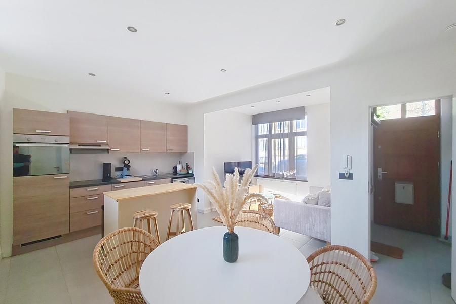 UCCLE : Dans le quartier très prisé de Fort-Jaco, appartement 1 chambre de 50 m² en très bon état sis au rez-de-chaussée sur 2 dans petite copropriété très bien entretenue. Composition : lumineux séjour avec cuisine ouverte équipée, 1 chambre, salle de douche avec emplacement machine à laver, WC séparé avec lave-mains, hall d'entrée et hall de nuit, installation électrique conforme. Local vélo commun accessible depuis l'extérieur, chaudière individuelle au gaz et double vitrage en bois. Installation électrique conforme. A proximité des transports en commun, de la Gare de Saint-Job, des commerces et écoles. PEB : G 358 kWhEP/m²/an - Emissions de CO2 : 72. Prix : 210.000 € et pas de charges communes. Il attend avec impatience ses nouveaux propriétaires. Infos et visites uniquement sur rendez-vous CENTURY 21 Bascule 02/340 37 00 ou info@century21bascule.be ou www.century21bascule.be