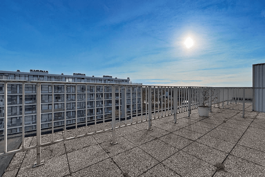 Gelegen op de 9e en bovenste verdieping van een gebouw in een privé-bebost park, biedt dit appartement een uitzonderlijke woonomgeving, met twee schitterende terrassen die volop genieten van het licht en het onbelemmerde uitzicht over de groene wijk van Ukkel.