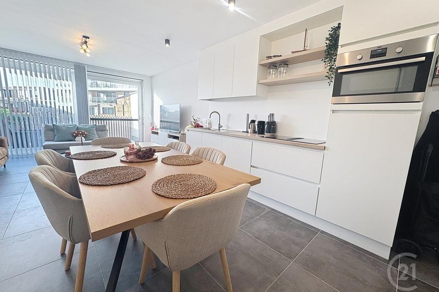 Dit moderne en verzorgde appartement met twee slaapkamers is gelegen in een recent gebouw in Westende en biedt alle comfort voor aangenaam wonen of verblijven aan zee.Het appartement bevindt zich op het gelijkvloers en beschikt over een ruime en lichtrijke leefruimte met een eigentijdse afwerking. De volledig ingerichte keuken sluit hier perfect op aan en is voorzien van alle hedendaags comfort. Via de keuken is er directe toegang tot een aparte berging, ideaal voor extra opslag en huishoudtoestellen.Verder zijn er twee volwaardige slaapkamers, een badkamer met douche en een apart toilet. De ruime inkomhal zorgt voor een praktische en aangename indeling van het appartement.Achteraan bevindt zich een rustig en aangenaam terras, perfect om in alle privacy te genieten van het buitenleven.Dit appartement combineert comfort, modern woonplezier en een praktische indeling, en is ideaal als vaste woonst, tweede verblijf of investering.