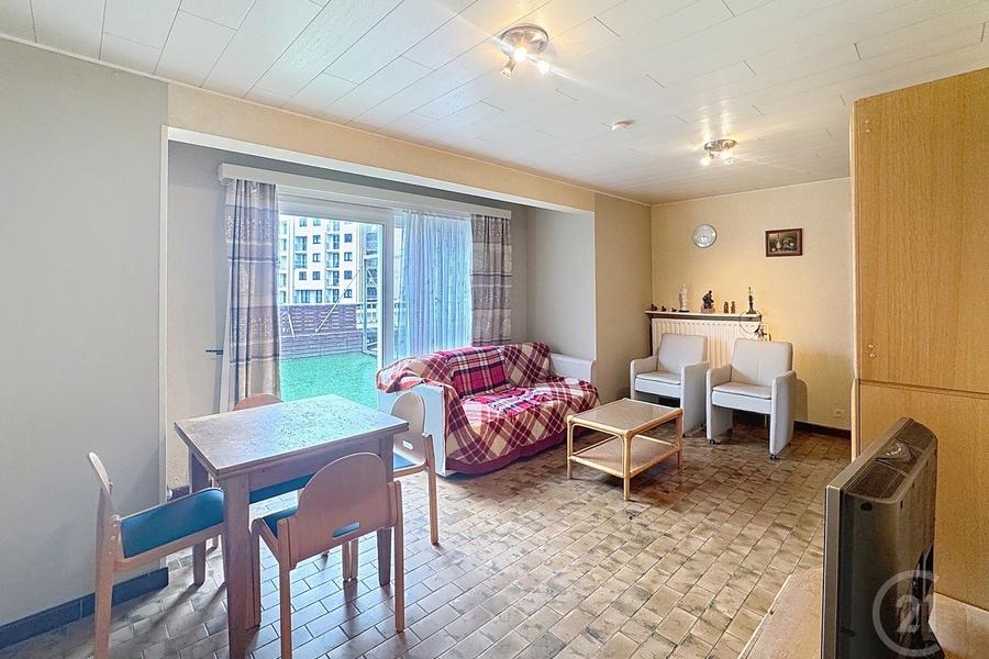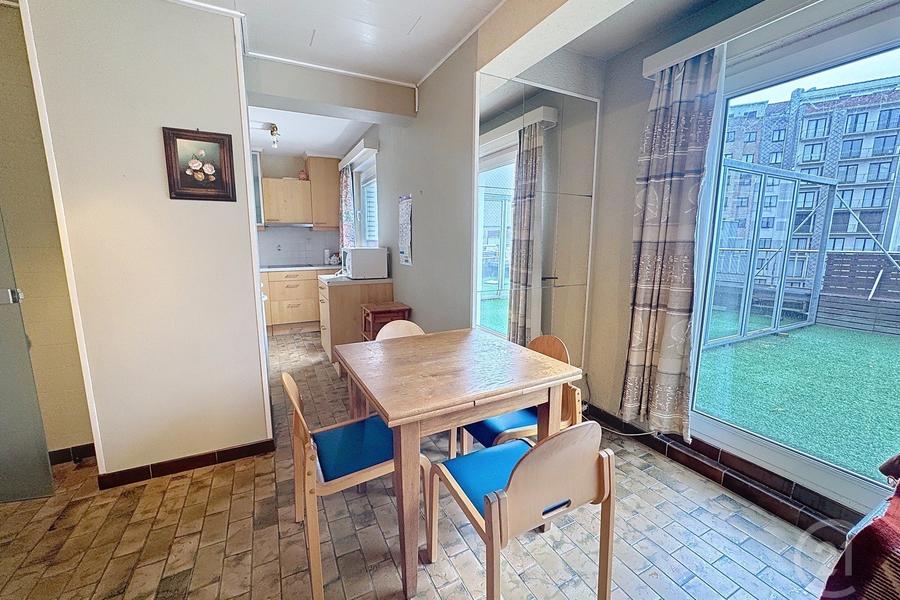 Dit fijne appartement, gelegen op de bovenste verdieping, biedt veel ruimte en comfort in een rustige en aangename buurt. Het beschikt over twee ruime slaapkamers. De badkamer is eenvoudig en functioneel, terwijl het aparte toilet extra gemak biedt. Er is ook een aparte bergruimte voor wasmachine en droogkast voorzien.Wat dit appartement echt bijzonder maakt, is het grote terras met prachtig zicht op de zee en wandeldijk. Hier kun je heerlijk buiten zitten en genieten van de zon of een rustig moment van ontspanning. Het appartement heeft veel charme en mogelijkheden om het naar eigen smaak in te richten. Laat je verrassen door het potentieel van dit appartement en maak snel een afspraak voor een bezichtiging!Mogelijkheid tot aankoop van een garage in het gebouw rechtover.
