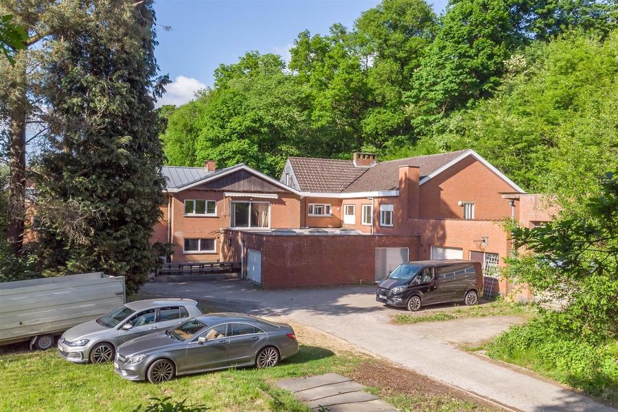 Century21Immonero stelt voor: dit uitzonderlijk goed,IDEAAL ALS HANDELSZAAK + WONING, uiterst geschikt voor uitoefening van een vrij beroep op een terrein van 4.971 m² en bestaande uit: 1/ een eerste ruime woning van 451 m² bestaande uit: Grote inkom met WC, Bureel 12m²; Living van 50 m², Keuken van 20 m², 4 ruime slaapkamers en 3 badkamers. De kelderverdieping bestaat uit : appartement met ingerichte keuken, badkamer en 2 slaapkamers en berging/stookruimte , en verschillende kelders .Mits wat opfriswerk onmiddelijk bewoonbaar. 2/ Een tweede woning van 174m² met ruime living, grote keuken, bureel en 3 grote slaapkamers en een lZolder waar nog 2 extra kamers kunnen worden gemaakt. Een loods van 520m² met vrije hoogte 2.8m, een garage van 70m² met hoogte 5 m, en een garage voor 1 wagen. Gelegen in een oase van rust en groen, op wandelafstand van het centrum.