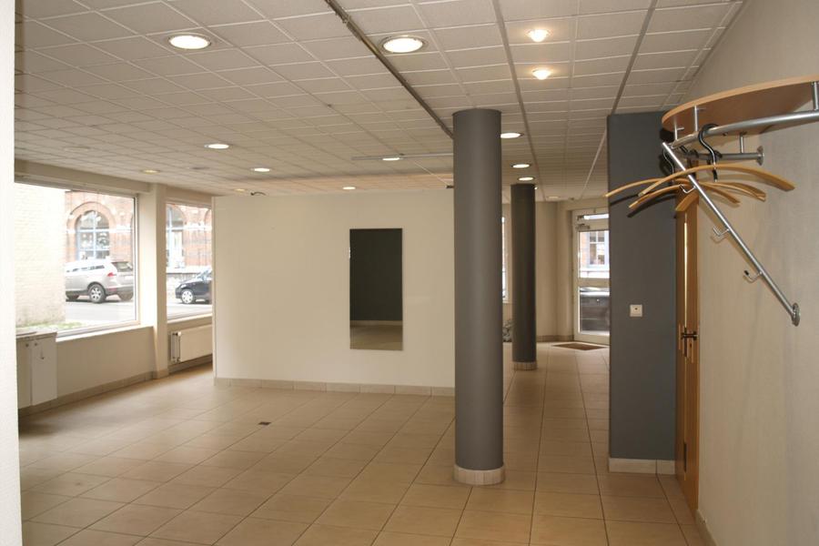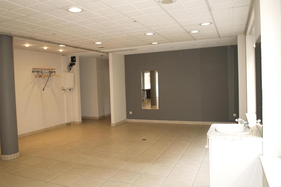 Het handelsgedeelte bevat ongeveer een 94m² open ruimte. Er is een apart toilet + doucheruimte voor het cliënteel. Via een afzonderlijke gang is er toegang tot een bureel/opslagruimte en berging. Mooie grote raampartijen, met veel lichtinval in de handelsruimte.