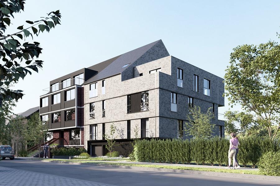 1ste verdieping: 1-slaapkamer appartement van 74 m² bruto + terras van 4 m² en een 2-slaapkamer appartement van 101 m² bruto + terras van 5 m²