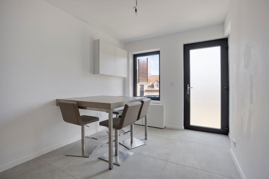 De energiezuinige woning werd zorgvuldig vernieuwd en is volledig instapklaar. Op het gelijkvloers kom je binnen in de lichtrijke leefruimte die naadloos overgaat in de open keuken. Deze is praktisch ingericht en komt uit in de gezellige stadskoer. Op de eerste verdieping vind je de eerste slaapkamer die ook kan dienen als extra leefruimte en de badkamer. Via de vaste trap bereik je, een verdieping hoger, de tweede, zeer ruime slaapkamer.