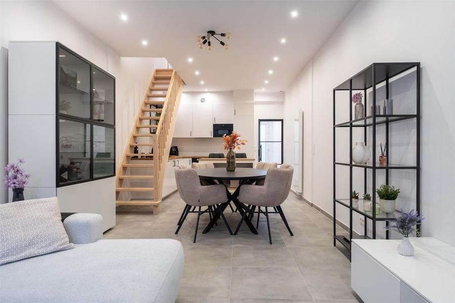 Je komt de woning in de inkomhal met toilet en ruime berging/wasplaats, vervolgens kom je in de lichtrijke leefruimte met open keuken, deze is volledig geïnstalleerd van al het comfort.