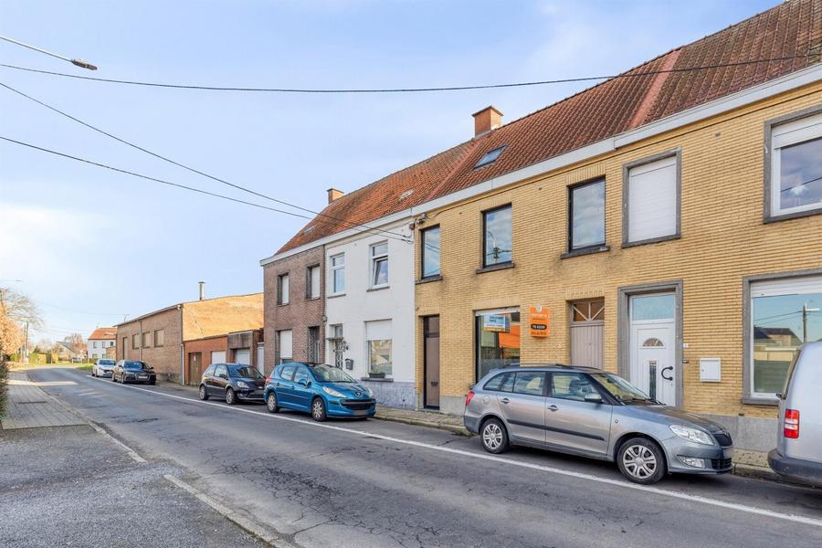 Op enkele honderden meter van fiets- en wandelpaden van waaruit je de wijdse velden en natuur rondom Avelgem kan intrekken en toch goed bereikbaar gelegen bij het centrum, staat deze degelijke, op te frissen rijwoning met doorgang op zij en toegang achterom via de tuin. Via de inkomhal kom je terecht in de knusse leefruimte, met zijn knetterende houtkachel aan de zithoek en zijn ruime eetplaats. De keuken achteraan biedt ruimte voor een aparte eettafel. Hierachter bevindt zich de te vernieuwen badkamer, en de toegang naar de praktische kelder. De tuin loopt helemaal door tot aan de achterliggende straat, wat echt wel een grote troef kan genoemd worden. De 1e verdieping telt 2 ruime en 1 kleinere kamer. De zolderverdieping kan nog als masterbedroom ingericht worden. Het dak van de hoofdbouw werd reeds geïsoleerd en de woning is elektrisch verwarmd. Mits zonnepanelen te plaatsen, dus de ideale manier om het F-label op een vlotte en budgetvriendelijke manier te laten dalen naar een gunstigere energiescore.