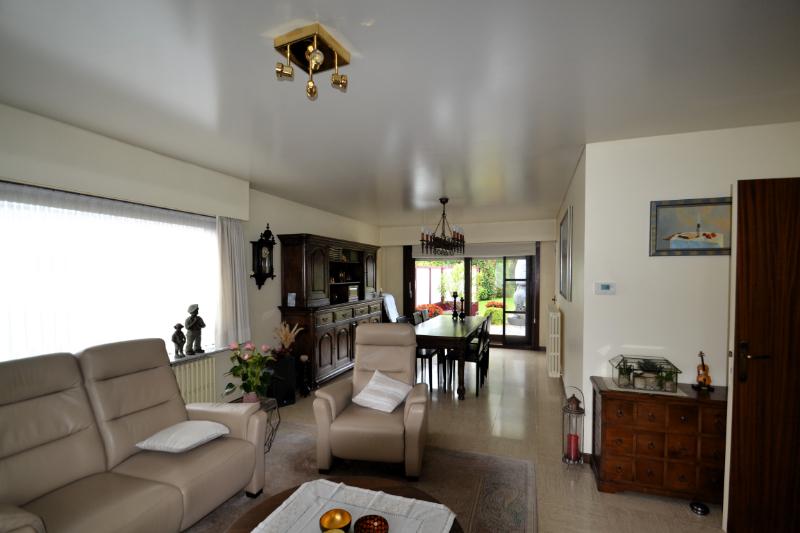 Gelijkvloerse gezinswoning, rustig gelegen te Bavikhove op een perceel van 1463 m².Deze woning is werkelijk ideaal gelegen: zeer rustig in een landelijke omgeving, doch op wandelafstand van het centrum van Bavikhove en op enkele minuutjes rijden van het centrum van Harelbeke (met vele voorzieningen als winkels, scholen,…), het shopping center van Kuurne en de stad Kortrijk.Via de inkomhal (met bezoekerstoilet) komen we in de ruime, lichtrijke living (salon met houtcassette en eetplaats) met zicht op het terras en de tuin. Aansluitend is er de keuken (eveneens met zicht op de tuin) met bijhorende ontbijtruimte en koele keukenberging.Via de nachthal bereiken we de badkamer (combi-ligbad-douche en badkamermeubel met wastafel) en 3 ruime slaapkamers, allen voorzien van CV en ramen met dubbel glas en PVC-rolluiken. Rechts van de woning is er de garage (met aansluiting wasmachine op regenwater, CV-brander, elektrisch bediende kantelpoort en toegang naar de ruime, geïsoleerde zolder).Achteraan de woning is er een zeer aangename, diepe en brede tuin, grenzend aan landbouwgebied: een plezier voor mensen, die van groen houden en een paradijs voor spelende kinderen.Er is, dankzij de geïsoleerde zolder, de centrale verwarming en het dubbel glas, geen energetische renovatieplicht.