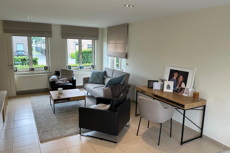 We komen binnen in een ruime inkomhal die toegang biedt tot het woongedeelte. De grote raampartijen zorgen voor een mooie lichtinval, terwijl de praktische indeling zorgt een gevoel van ruimte en comfort. Aangrenzend vinden we de keuken, voorzien van alle comfort en met een prachtig uitzicht op de tuin. Verder vinden we op de benedenverdieping nog een gastentoilet en een multifunctionele ruimte, momenteel ingericht als kantoor.