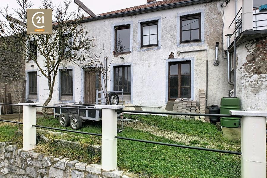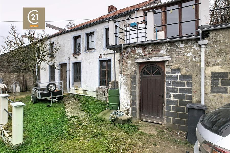 CERFONTAINE: Karakteristiek huis met 3 gevels dat gerenoveerd moet worden, mogelijkheid voor 3-4 slaapkamers, woonoppervlakte van 180m² met tal van indelingsmogelijkheden, terras met uitzicht, kelder, garage op 707m² bebost en omheind terrein, gelegen vlakbij de stuwdammen van Eau d'Heure en voorzieningen.