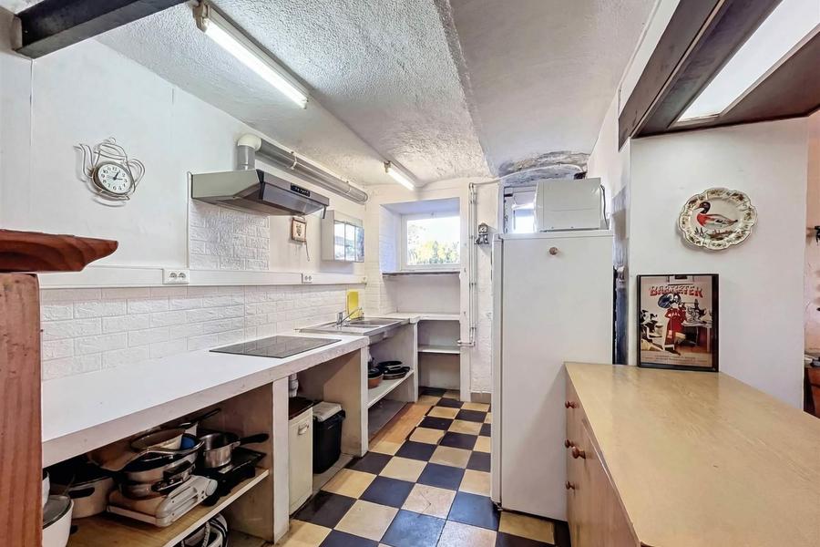 De begane grond bestaat uit een hal, een eetkamer, een keuken, een woonkamer, een bijkeuken met toilet en een kelder. De huidige indeling zorgt al voor een functionele organisatie van de leefruimtes, terwijl je de vrijheid hebt om de volumes aan te passen aan je eigen wensen.
