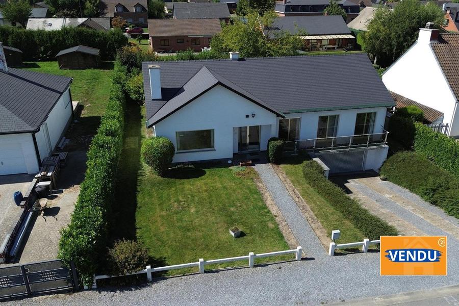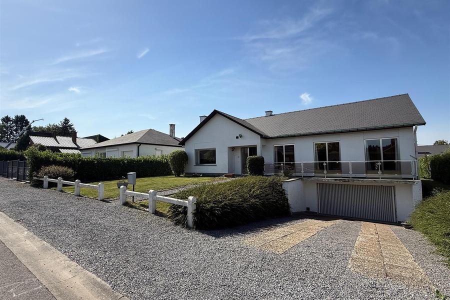 Het heeft een ruime, lichte woonkamer, eetkamer, ingerichte keuken, badkamer, apart toilet en drie slaapkamers. Een garage van 50 m² en kelders completeren het geheel, gelegen op een bebost terrein van 8 are 62 ca.