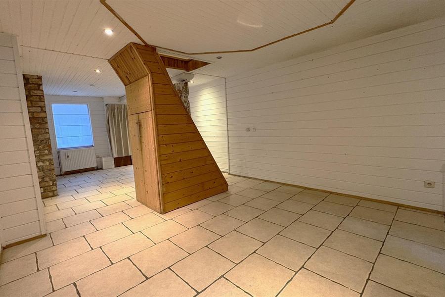 Grote leefruimte met geïntegreerde keukenhoek waar een mooie dak uitbouw zorgt voor heel veel licht.