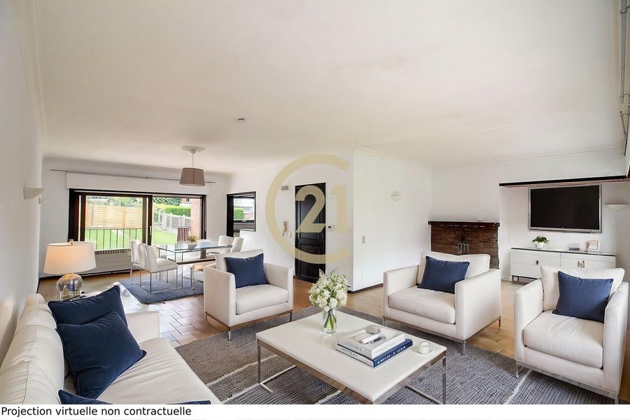Kraainem. Ruime woning gebouwd in 1976 op een perceel van 2 are 20 centiare, met een bruto oppervlakte van 240 m². De woning bestaat op de begane grond uit: een ruime inkomhal, een grote garage van 50 m² die plaats biedt aan 2 auto's, een wasruimte en een stookruimte. Op de eerste verdieping: overloop met toilet, een ruime ingerichte keuken en een grote L-vormige woonkamer van 52 m² met toegang tot een terras van 16 m² en een tuin van +/- 100 m² op het zuidwesten. Op de tweede verdieping: overloop met een badkamer/douche/WC en 3 ruime slaapkamers (13 m²/17 m²/20,5 m²). Bergzolder, houten dubbele beglazing met overal rolluiken, recente condensatiegasketel. EPC: C. Voor meer informatie en bezichtigingen, Century21 New Home: 02/880.21.21.Asbestrapport beschikbaar. Niet-contractuele advertentie, onder voorbehoud van wijzigingen. Oppervlakten ter informatie.