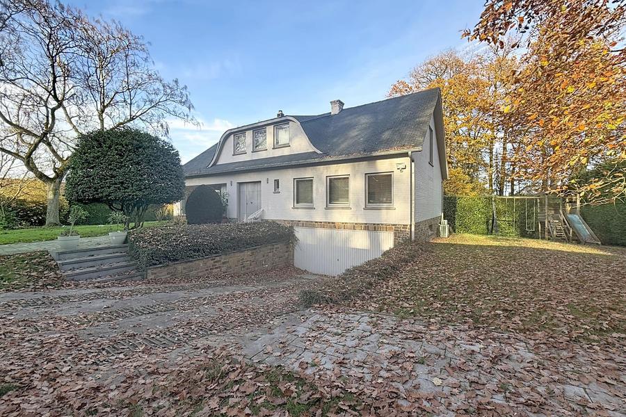 De begane grond bestaat uit een hal, een woonkamer van 40 m² met tv, een bureau en een gastentoilet met garderobe. Boven leidt de nachthal naar een ruime badkamer met een centraal bad, douche, wc en bidet, met directe toegang tot de ouderslaapkamer. Nog twee slaapkamers en een tweede badkamer met bad, douche en wc maken dit niveau compleet. De kelder bestaat uit een garage, kelders, een wijnkelder en een bijkeuken. Volledig omheinde tuin met bomen.