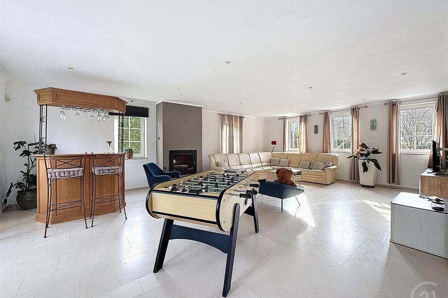 Située dans le très recherché Domaine du Bois de Rognac à Neupré, cette villa d’exception construite en 2000 séduit par ses volumes généreux et son environnement résidentiel privilégié. Développant une surface habitable de 337 m² sur un terrain de 3.200 m², elle propose une distribution idéale pour une vie de famille confortable ou une activité professionnelle à domicile : vaste salon avec feu ouvert, salle à manger et séjour lumineux, cuisine entièrement équipée, 6 chambres et 2 bureaux. Les espaces de vie s’ouvrent harmonieusement sur la terrasse et le grand jardin, offrant un cadre verdoyant et intime.