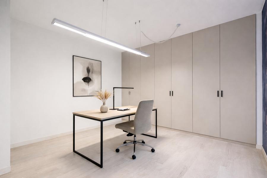 Bij het betreden van de woning komt u in een royale inkomhal met geïntegreerde bureauruimte en vestiaire — perfect voor wie wonen en werken wil combineren. Van hieruit heeft u toegang tot de ruime garage met automatische rolpoort. Achteraan bevindt zich een praktische en grote wasruimte, een fraaie badkamer en een polyvalente kamer die zich leent tot diverse invullingen (praktijkruimte, hobbykamer, extra slaapkamer…). Deze verdieping biedt bovendien directe toegang tot de mooi aangelegde tuin.
