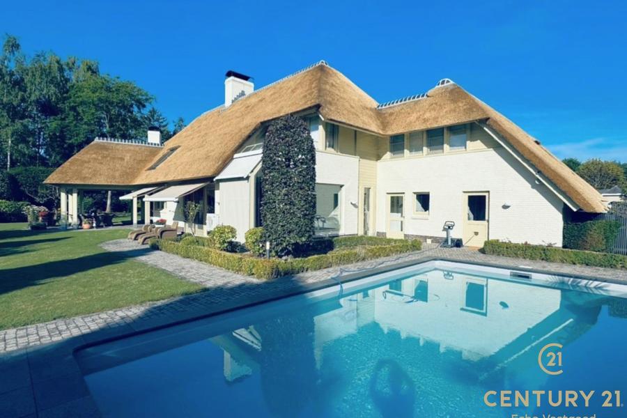 De villa beschikt over een nieuwe rieten kap, een prachtig aangelegde tuin met een vernieuwd en verwarmd buitenzwembad en een sfeervolle vijver.