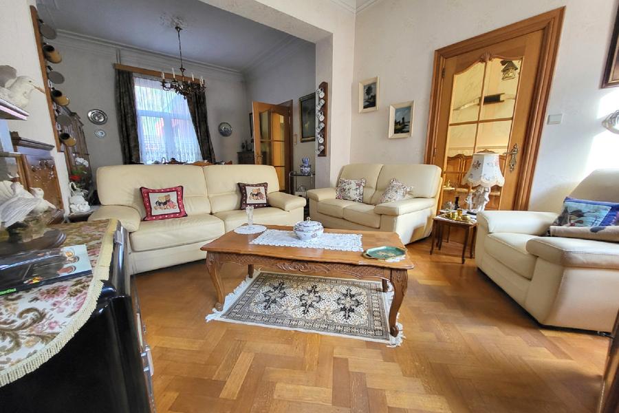 Cette agréable maison bourgeoise se compose au rdc d'un hall d'entrée, spacieux living ainsi qu'une cuisine semi-équipée et salle de bain avec coin buanderie. L'étage comprend 2 chambres et un bureau. Cave et grenier aménageable. Cour et jardin. Possibilité d'aménager des kots pour étudiants. Faire offre à partir de et sous réserve d'acceptation des propriétaires. Informations non-contractuelles n’engageant pas la responsabilité de l’agent immobilier.