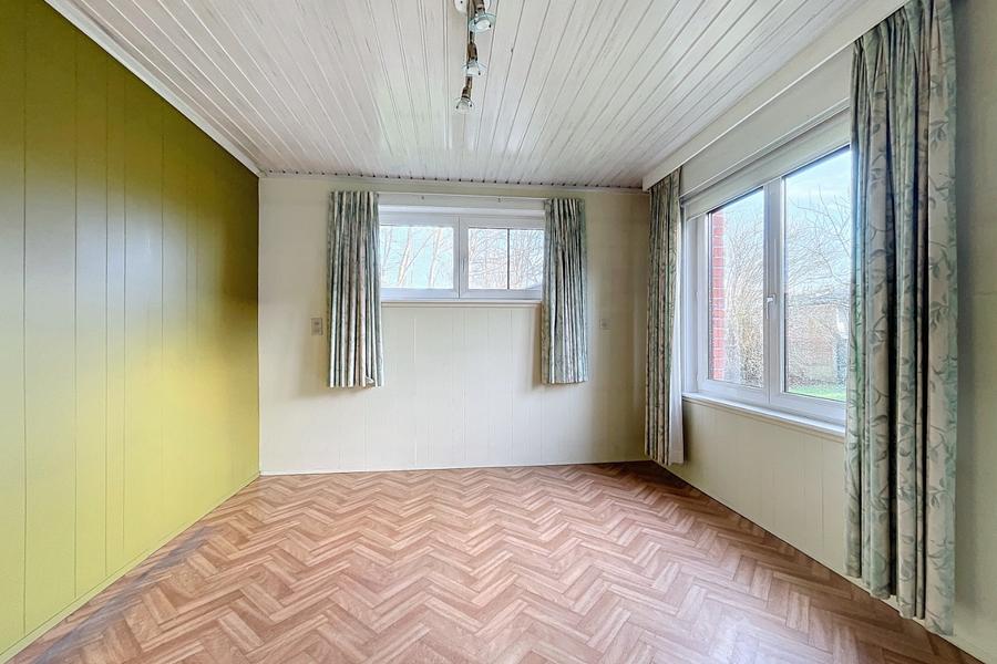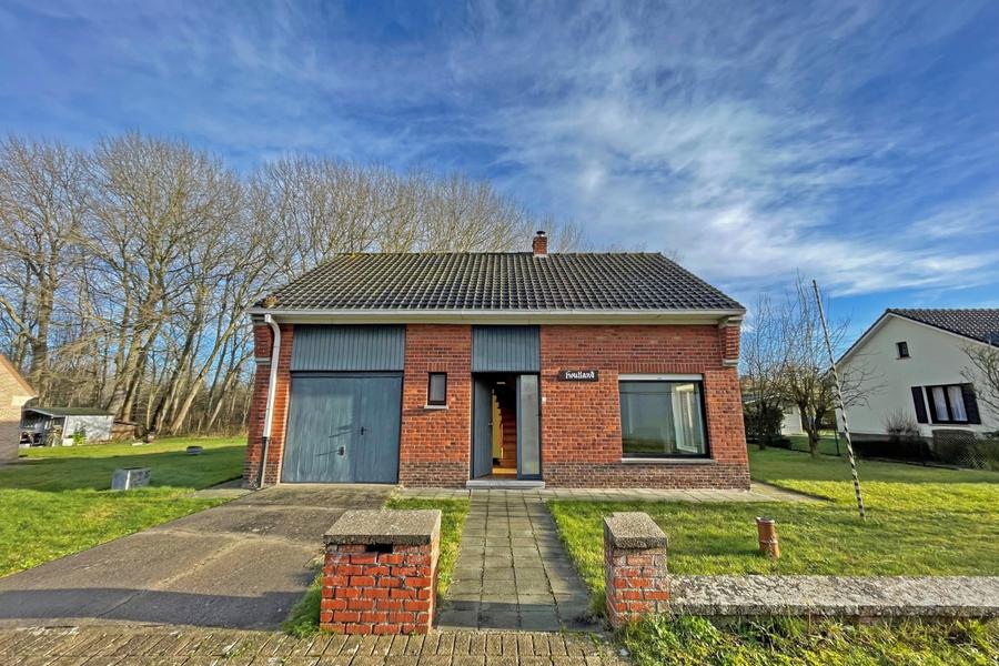 Te renoveren villa uitgevend op natuurgebied. De woning beschikt over veel potentieel maar is volledig te renoveren. Indeling: inkomhal, living met eetkamer, keuken, garage. Verdiep: twee slaapkamers en een badkamer. Mooietuin grenzend aan het natuurgebied. Ref. Houtland.