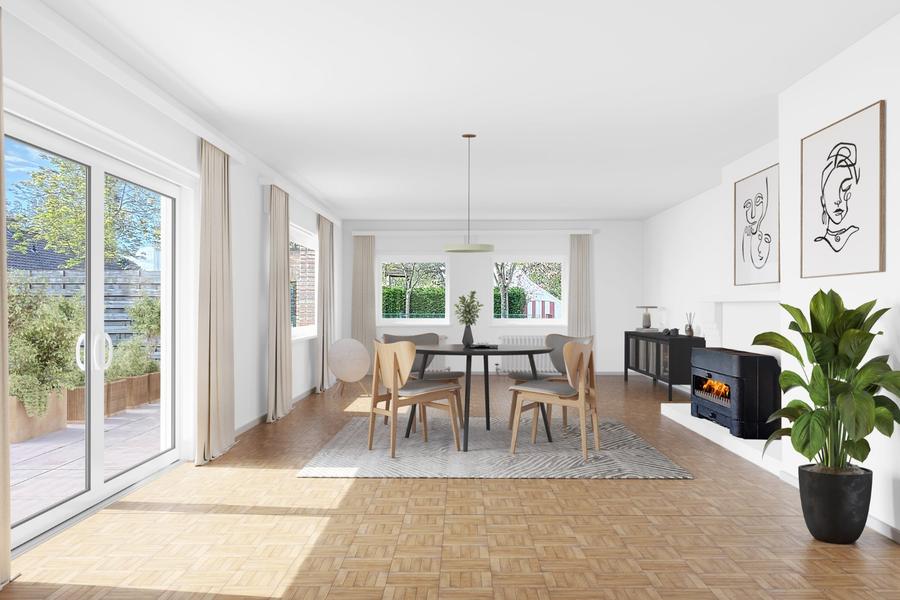 Zeer degelijke en zongerichte woning gelegen in een uiterst rustige buurt van Sint-Idesbald. De woning bestaat uit: inkomhal, toilet, living met eetkamer, keuken, slaapkamer en badkamer (glv), garage en kelder. Verdiep: drie slaapkamers, zolderruimte en een afzonderlijk toilet. Zongerichte tuin met terras. De afbeelding van de witte gevel is illustratief. Ref. ST-121