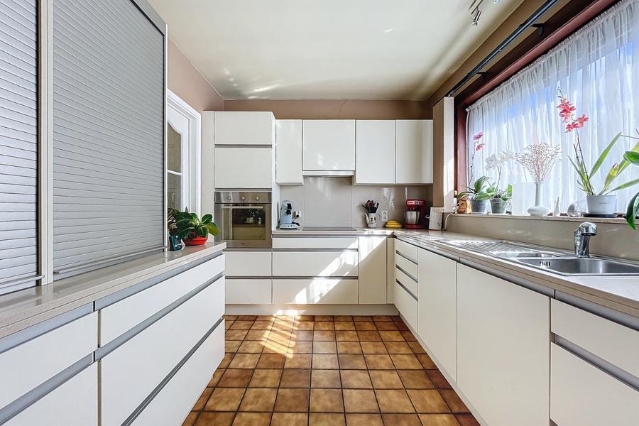 Zongerichte woning (volledig gelijkvloers) op 600m van het centrum en 900m van het strand. De woning bestaat uit: inkomhal, toilet, ingerichte keuken, living met eetkamer, drie slaapkamers, een badkamer, een garage en ruime zolder. Zongerichte tuin. Ref. St-125