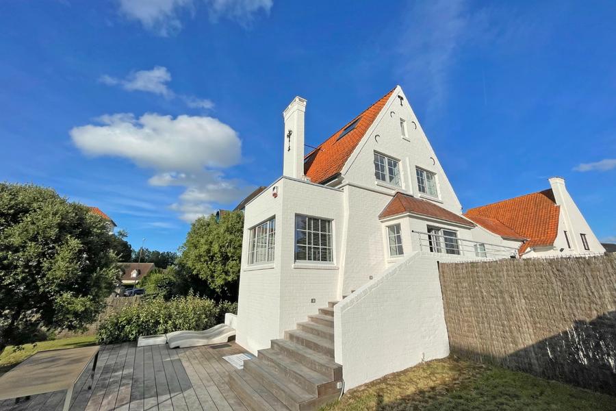 Prachtige villa gelegen in een doodlopend straatje met weinig tot geen verkeer en op slechts 700m van het strand. Deze woning werd volledig gerenoveerd en afgewerkt met uiterst kwalitatieve materialen. Inkomhal met vestiaire, toilet met wastafel, mooie living met gashaard, eetkamer met maatmeubelen, volledig ingerichte keuken (fornuis Caumartin). Het gelijkvloers werd volledig voorzien van ingemaakte kasten. Verdiep: twee slaapkamers (met ingemaakte kasten en airco), twee badkamers. Verdiep 2: slaapkamer met airco en tweede slaapruimte. Ruime kelderverdieping die bestaat uit grote garage, wasplaats en extra bergruimte. De tuin geniet van ’s morgens tot ’s avonds van de zon en beschikt over een mooi groot terras (5x7m). Mogelijkheid tot aankoop meubelen. Extra’s: alarmsysteem, elektrische garagepoort. Ref. ST-109