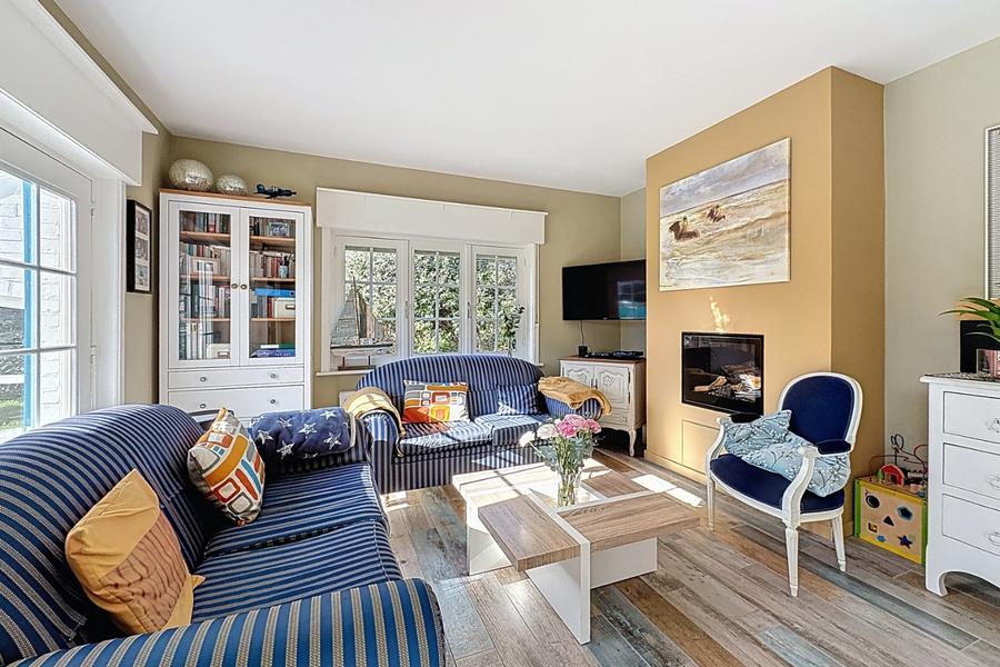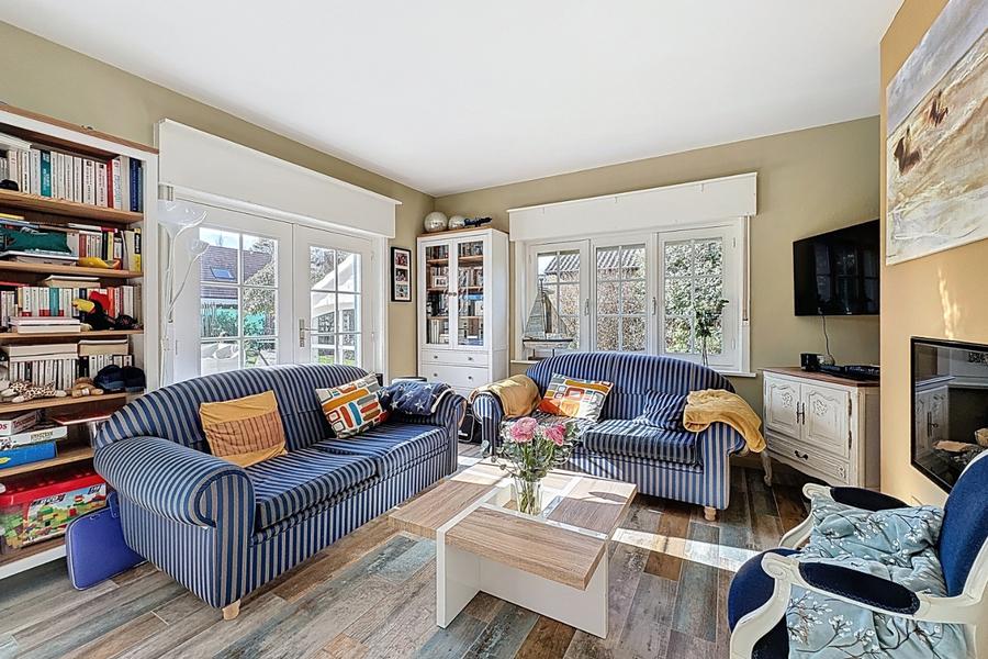 Uiterst charmante villa met rustige ligging bestaande uit: inkomhal, toilet, living met eetkamer, ingerichte keuken, twee slaapkamers en een badkamer (glv), garage. Verdiep: doorloopkamer, badkamer en tweede slaapkamer. Zongericht terras met tuin. Ref. Adelaide.