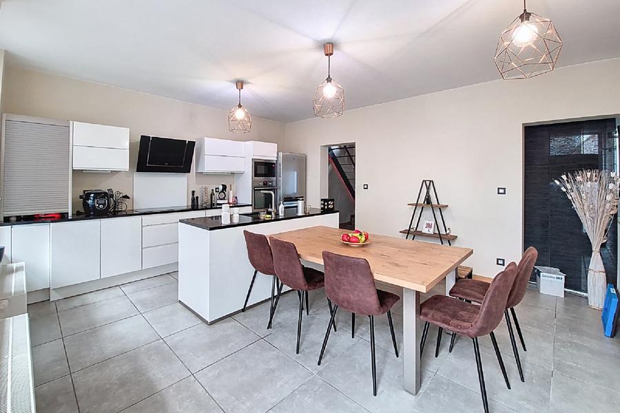 Située à deux pas du célèbre beffroi de Thuin, cette superbe maison entièrement rénovée allie caractère et modernité. Aucun travaux à prévoir — il ne vous reste plus qu’à poser vos valises ! Dès l’entrée, vous serez séduit par une spacieuse cuisine ouverte sur la salle à manger, idéale pour recevoir famille et amis dans une atmosphère conviviale. À l’arrière, un salon lumineux offre un espace détente agréable. Une buanderie pratique donne accès à la cour privative, parfaite pour profiter des beaux jours et un WC séparé complètent le rez-de-chaussée. Au premier étage, une grande chambre vous charmera avec son dressing sur mesure et une magnifique salle de bains comprenant douche italienne, baignoire, double vasque et WC. Le deuxième étage propose deux belles chambres supplémentaires, idéales pour des enfants, un bureau ou une chambre d’amis. L’emplacement est exceptionnel, en plein centre historique de Thuin, à proximité immédiate des commerces, des écoles et des transports. La rénovation complète, les matériaux de qualité et le confort moderne font de cette maison une opportunité rare à ne pas manquer. Faire offre à partir de 229.000€ et sous réserve d'acceptation des propriétaires. Informations non contractuelles n’engageant pas la responsabilité de l’agent immobilier.