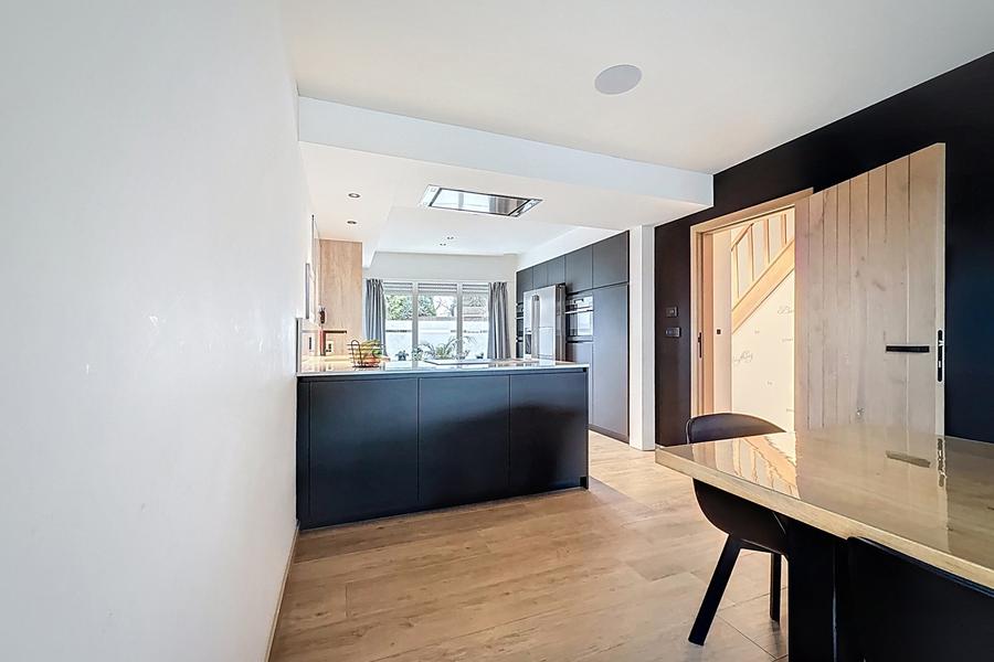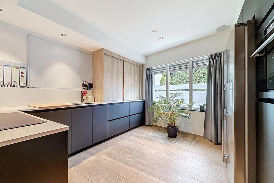 🍽️ Op het gelijkvloers bevindt zich een zeer ruime, volledig geïnstalleerde keuken met kwalitatieve AEG-toestellen (combi microgolfoven, stoomoven en ingebouwde koelkast-diepvriezer). De keuken sluit aan op de open woon- en eetkamer, wat zorgt voor een aangename leefruimte.