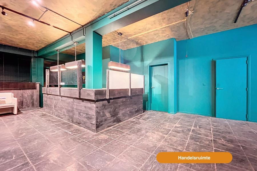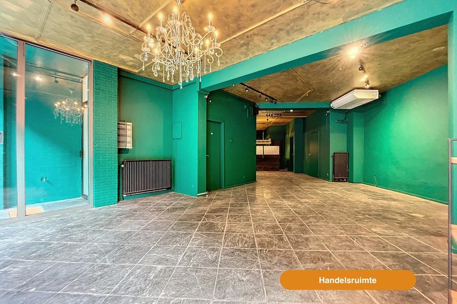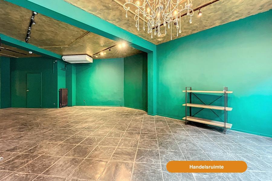 Het handelspand beschikt over een ruime winkelruimte, een aparte toilet, keuken en garage.