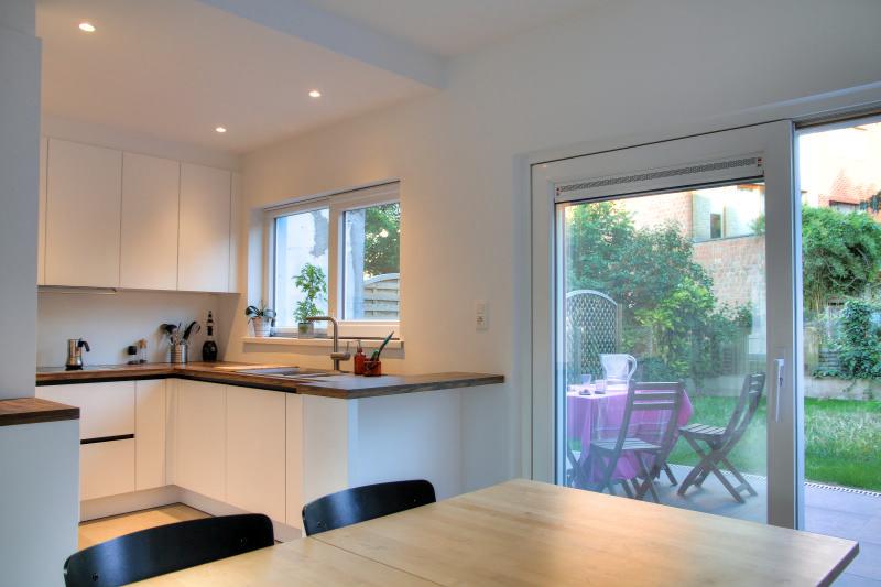 UCCLE : Quartier résidentiel, maison bel étage de +/- 150 m² complétement rénovée avec goût et matériaux de qualité en 2019. Composition : Rez-de-chaussée : hall d'entrée, buanderie, local chaudière, garage, emplacement de parking devant la maison, wc séparé, cave. 1er étage : salon, salle à manger, cuisine ouverte super équipée avec accès au jardin et terrasse, palier. 2ème étage : 2 chambres, bureau, salle de douches avec wc et cabine douche, palier. 3ème étage : grenier aménagé avec une chambre et une salle de bains. Chauffage individuel au gaz, châssis en PVC double vitrage. A proximité des transports en commun, écoles et commerces. PEB : D+ 166 kWhEP/m²/an - Emissions de CO2 : 33. Elle attend avec impatience ses nouveaux propriétaires ! Prix : 520.000 €. Infos et visites uniquement sur rendez-vous CENTURY 21 Bascule 02/340 37 00 ou info@century21bascule.be ou www.century21bascule.be