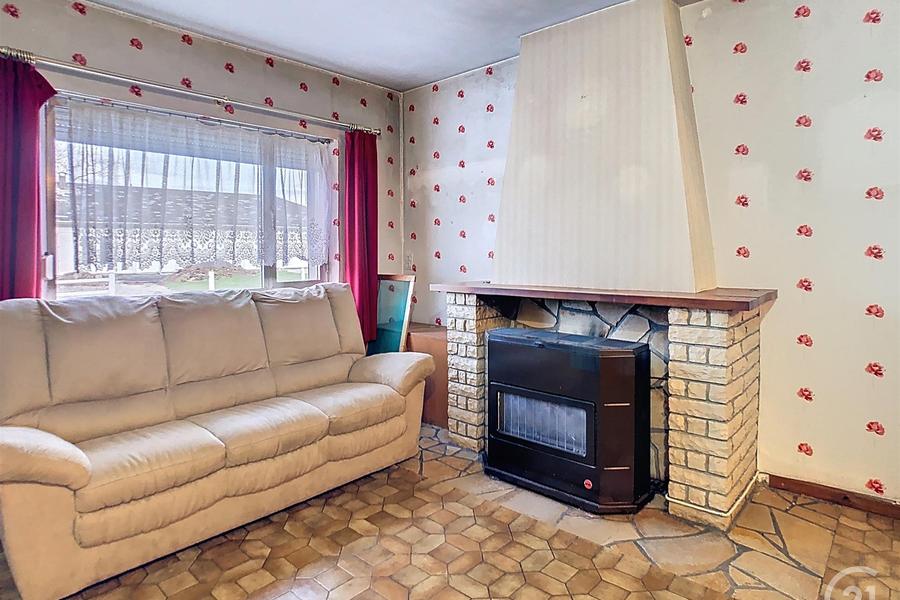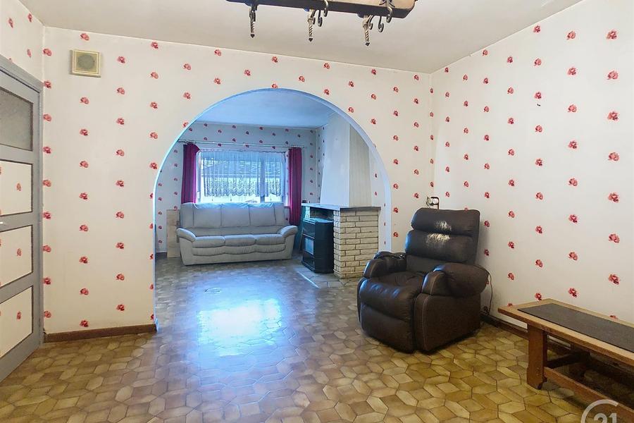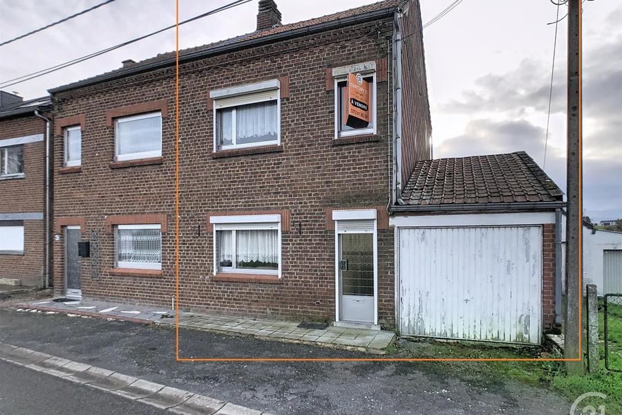 VIRELLES: Te renoveren huis met 3 voorgevels, 2 slaapkamers, woonkamer, eetkamer, keuken, doucheruimte, garage en tuin op een omheind terrein van 615m² op het zuiden, gelegen in een rustige straat dicht bij alle voorzieningen.