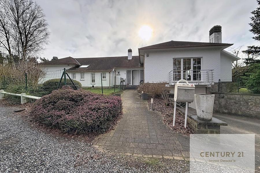 Century 21 Immo Dewaele heeft het genoegen u deze gerenoveerde gelijkvloerse villa voor te stellen met een bewoonbare oppervlakte van 291m². Gelegen in de wijk St-John, op een perceel van 9a23ca op het zuiden, bestaat uit: inkomhal, grote woonkamer, ingerichte open keuken, 2 douchekamers, 4 ruime slaapkamers. De tuin is voorzien van een verwarmd zwembad en een tuinhuisje. Een dubbele garage en grote kelders maken het geheel compleet. 24 fotovoltaïsche panelen. Talrijke ombouwmogelijkheden: kangoeroewoning, professioneel, enz. PEB C - 199 kWh/m².an.